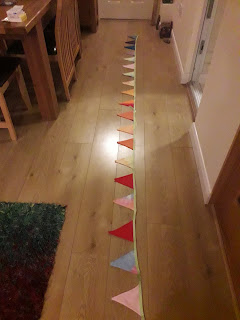I made these to go with my friend's new bar sign I've made, to go round the outside of the bar. I used the leftover fabric to make these small flags. Also added some flowers to fill the spaces between the flags. Hope she likes them.