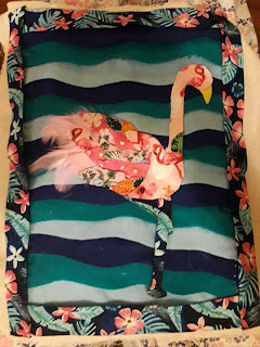 I'm in the process of making this flamingo picture in the first pic from felt and fabrics from my craft stash. It's almost done (last pic). Need a few more flourishes and then a frame. Hope you like it. Will post the finished one.
